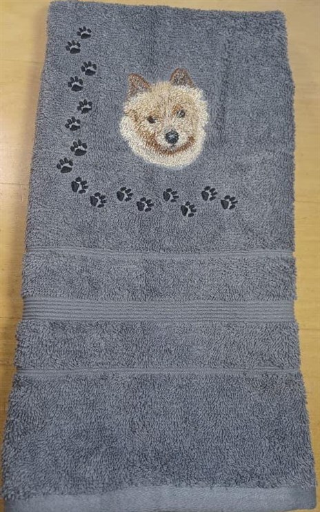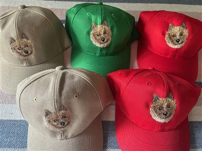 Finns i färgerna vit eller marinblå med broderad text NORWICHTERRIER