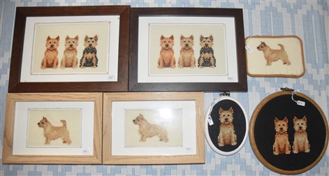 Korsstygnstavlor handbroderade av Eva-Lena Johansson och skänkta till klubben.
