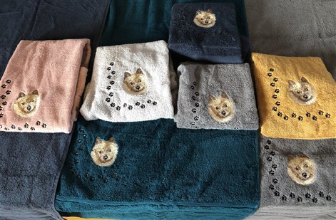Pris handduk 195 kr +porto/ frakt. Pris badlakan 270 kr +porto/frakt.